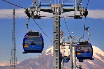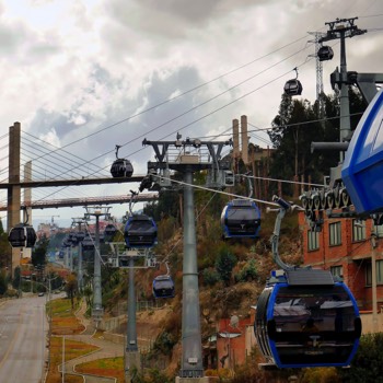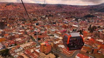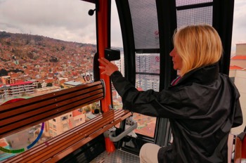 À 10 km de La Paz, des embouteillages s’annoncent… Hubert lève le nez et découvre ces cabines…