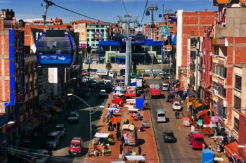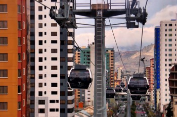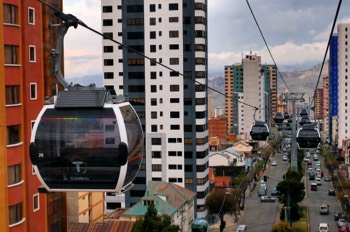 La Paz, capitale où cette réalisation futuriste cohabite avec des constructions de briques de guingois et des tours aux couleurs de rubik's cube.