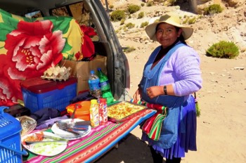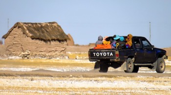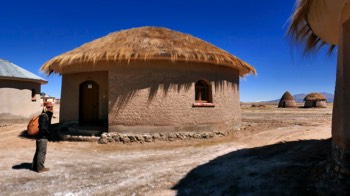 Arrêt déjeuner dans l’un des rares villages de ce Sud Lipez. Une cinquantaine de familles vit dans ces maisons construites à l’aide de parpaings, faits de terre et d’eau.