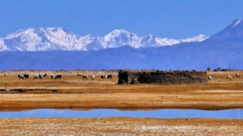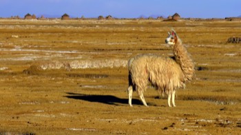 C’est dans un silence incroyable avec des sommets enneigés entrecoupés d’autres sommets, ceux des chapeaux pointus des cases Chipayas, le tout sur un sol plus ou moins asséché d’un blanc de sel et de glace, d’une végétation rare avec lamas et moutons, que nous ressentons ce moment de vie rarissime.