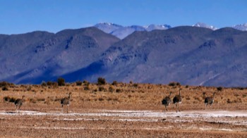 Hubert, assis à l’avant, ouvre la fenêtre de temps à autre pour des lamas, vigognes, quelques flamands et autruches.
