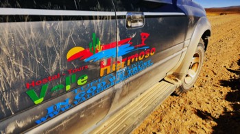 Après une nuit dans un hôtel de sel. Et oui, sol, tables, bancs, lits, que du SEL !!!