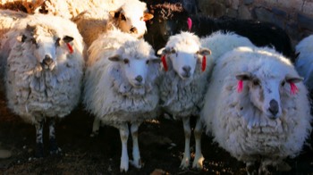 "Une centaine de moutons et agneaux, me dit cette femme." Elle les rassemble sans précipitation mais n’apprécie pas que des cochons viennent les rejoindre.