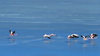 Sud Lipez - Envol de flamands roses sur la Kollpa Laguna