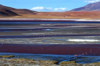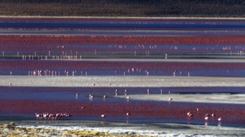 Après des lagunes déjà si colorées, Paul nous annonce la "Laguna Colorada". Fier, il a raison de l’être. Nous avons le souffle coupé.