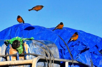 Nouveau matin avec juste brossage de dents, personne ne cherche à avoir plus de contact avec cette eau si froide. Et première image de cet enclos fait de bric et de broc, à côté de notre chambre, avec des regards bien étonnés d’un côté comme de l’autre.