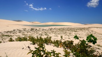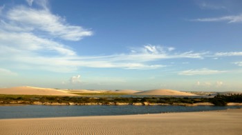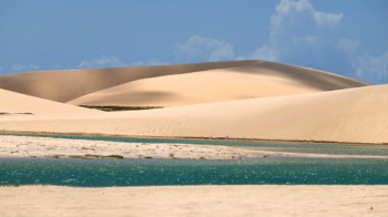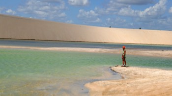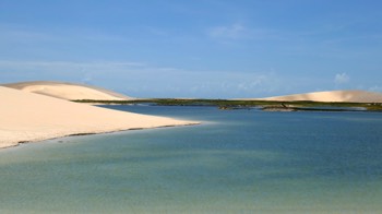 Nous avons quitté Jericoacoara en 4x4 en compagnie des femmes qui vendent leurs robes et nappes au crochet le matin en bordure de plage. Assise à l’intérieur, je les entends rire aux éclats aux explications, surtout gestuelles, d’Hubert à propos de notre petite expédition de la veille à pied à travers les dunes jusqu’à l’entrée du parc national. 6km entre dunes et lagunes… "Zinzin, lui ont-elles fait du doigt sur la tête."