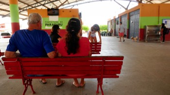 Sortie de l’aéroport à Fortaleza avec un simple escalator et des bus stoppent dès qu’on leur fait un signe. Nous en faisons un au 404 qui nous dépose à la rodoviaria, gare routière du centre-ville. Pas un mot de français ou d’anglais à ce guichet mais notre jolie jeune femme nous écrit à la main "Today Paracuru 13h". Il est 12h57.