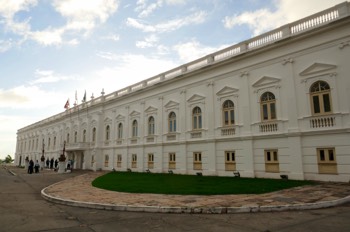 Une fanfare d’élèves nous souhaite la bienvenue à São Luis ce vendredi 26 mai. Ils passent, les gros cuivres en dernier, dans la rue longeant la Camara Municipale, la mairie, où j’attends avec les sacs. Ecoles de musique, danse, peinture sont installées dans ce quartier. Et Hubert, sans le savoir, allant au hasard, va superbement négocier une chambre dans le plus bel hôtel de São Luis "Portas Da Amazonia".
