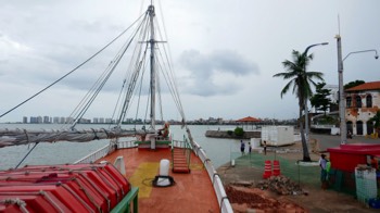 Bus de nuit de São Luis à Belém. Et là, à un bon prix, une cabine sur le Ana Beatriz IV pour aller jusqu’au port de Santana. Il est 7h, le bateau part à midi, un minibus nous dépose directement sur le quai.