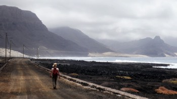 Aéroport de Césaria Évora à Mindelo au Cap-Vert ! Après les applaudissements à l’aterrissage, la piste est au ras de l’océan, trois passagers Cap-Verdiens me laissent descendre la première de l’avion suivie d’Hubert. Petit arrêt, grande respiration en haut de la passerelle d'embarquement… Premier pays avec le nom de cette chanteuse pour nous accueillir "obrigado, merci".
