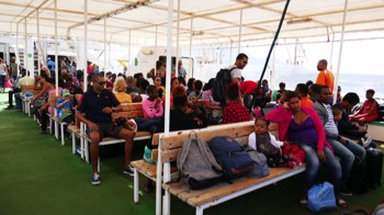 Puis nous prenons le bateau pour Santo Antão. Beaucoup de monde en cette veille de Pâques. Les gens de São Vicente vont rendre visite à leur famille de Santo Antão, belle et heureuse ambiance pendant cette heure de traversée.
