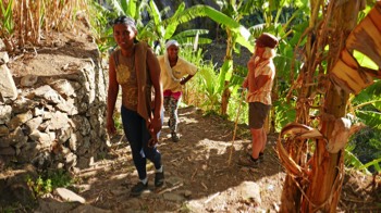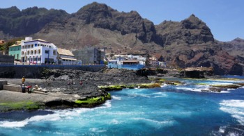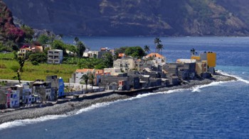 Antonio prend la route qui longe l’océan. Porto Novo, au sud de l’île, n’est que rouille et ocre en couleurs mais remontant par l’est le vert fait son apparition. Bananiers, canne à sucre dont c’est la pleine saison, cocotiers, manguiers se laissent voir dans ces virages surplombant la mer. Le village de Janela puis celui de Paúl se profilent le long de la côte.