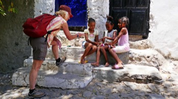 Un chauffeur d’aluguer, Jean, nous prend régulièrement avec les élèves qu’ils ramènent de Ribeira Grande à Corda. Route fabuleuse que nous descendrons à pied après une nuit super étoilée sous la tente dans le cratère de Cova.