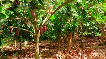 et mène à des plantations de cacao, bananiers et quelques cases…