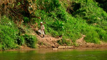 C’est ce que nous explique ce jeune homme qui, étonné de nous voir de ce côté, nous propose de nous ramener jusqu’au pont avec l’accord de Jonathan, le piroguier.