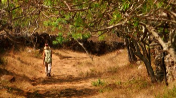 Un sentier pavé de 9 km qui traverse une vallée aux cactus et arbres aux formes étranges parfois.