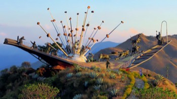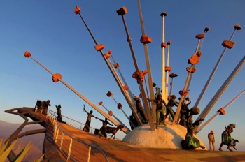 Au soleil couchant, nous retournons près de ces sculptures…