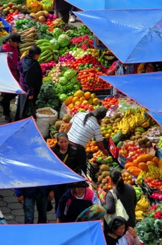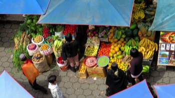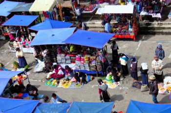 Au-dessus de la pharmacie de Elsa et Eduardo, sur le balcon des chambres qu’ils proposent, nous sommes restés un moment ce samedi, jour de marché.