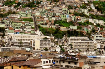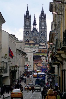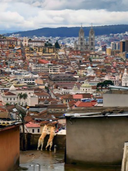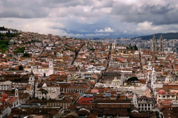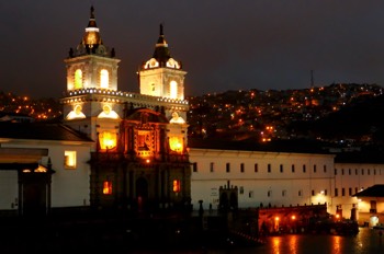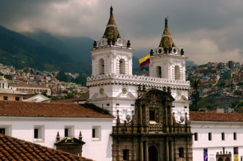 Quito s'élève à une altitude de 2 850 mètres, nombreuses sont ses églises des XVIe et XVIIe siècles.