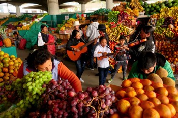 Ceux du marché couvert sont plus chanceux, pas de pluie et de la musique !