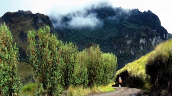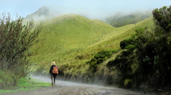Malgré des nuages bien présents, nous prenons la route qui grimpe vers les lagunes de Mojanda. Très vite, une femme au volant d’un 4x4 nous propose de monter.