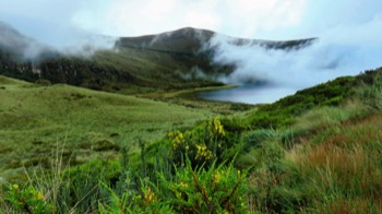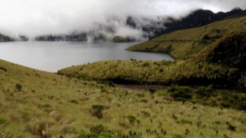 La pluie cesse et nous laisse entreprendre le tour de la première lagune. Le brouillard permet par moment de deviner la beauté de ces montagnes qui l’entourent, jamais très longtemps.