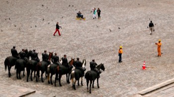 Divertissante cette police montée, même les ouvriers n’hésitent pas à la photographier !