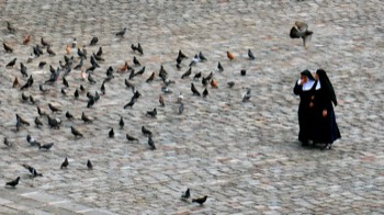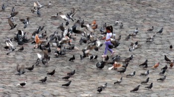 De la terrasse de notre hôtel, rien n’échappe à l’œil d’Hubert. La Place San Francisco devient son univers.