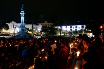 Mais ce vendredi 13 avril, nous avons les larmes aux yeux place de l'Indépendance. Bougies, roses blanches pour leur rendre hommage. Ils ont été assassinés par un groupe colombien dissident des ex-rebelles FARC.