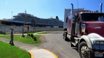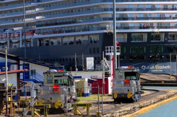 Sur le canal, bateau de croisière, le Queen Elisabeth