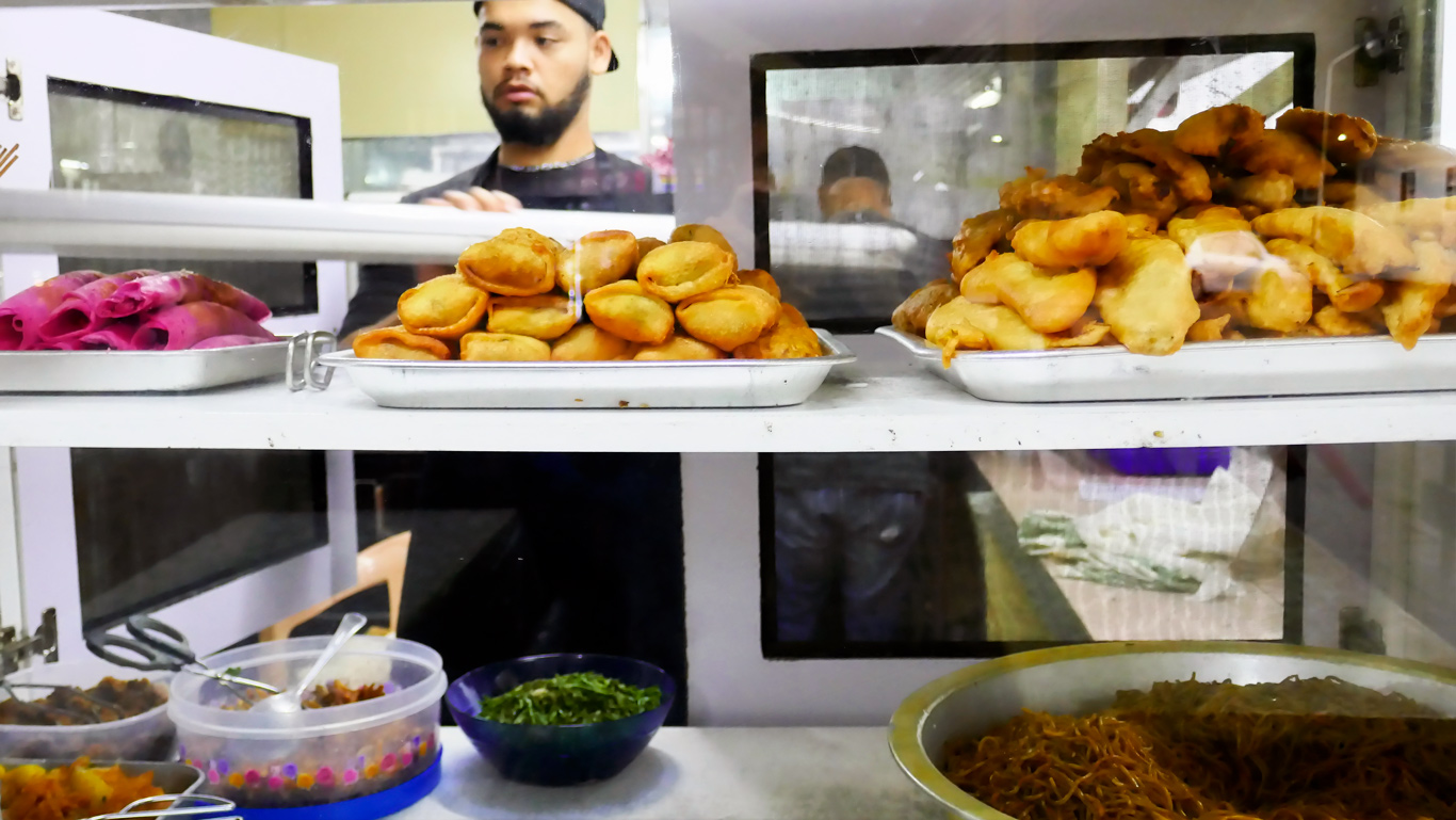 Hubert descend acheter des "lumpias", sortes de crêpes fourrées aux épinards soja gingembre, et une part de poulet frites que nous mangeons sur notre balcon…
