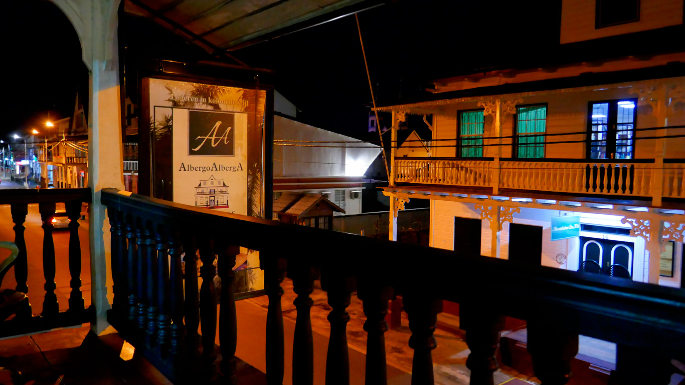 Vue de la terrasse de l'hôtel Albergo AlbergA à Paramaribo