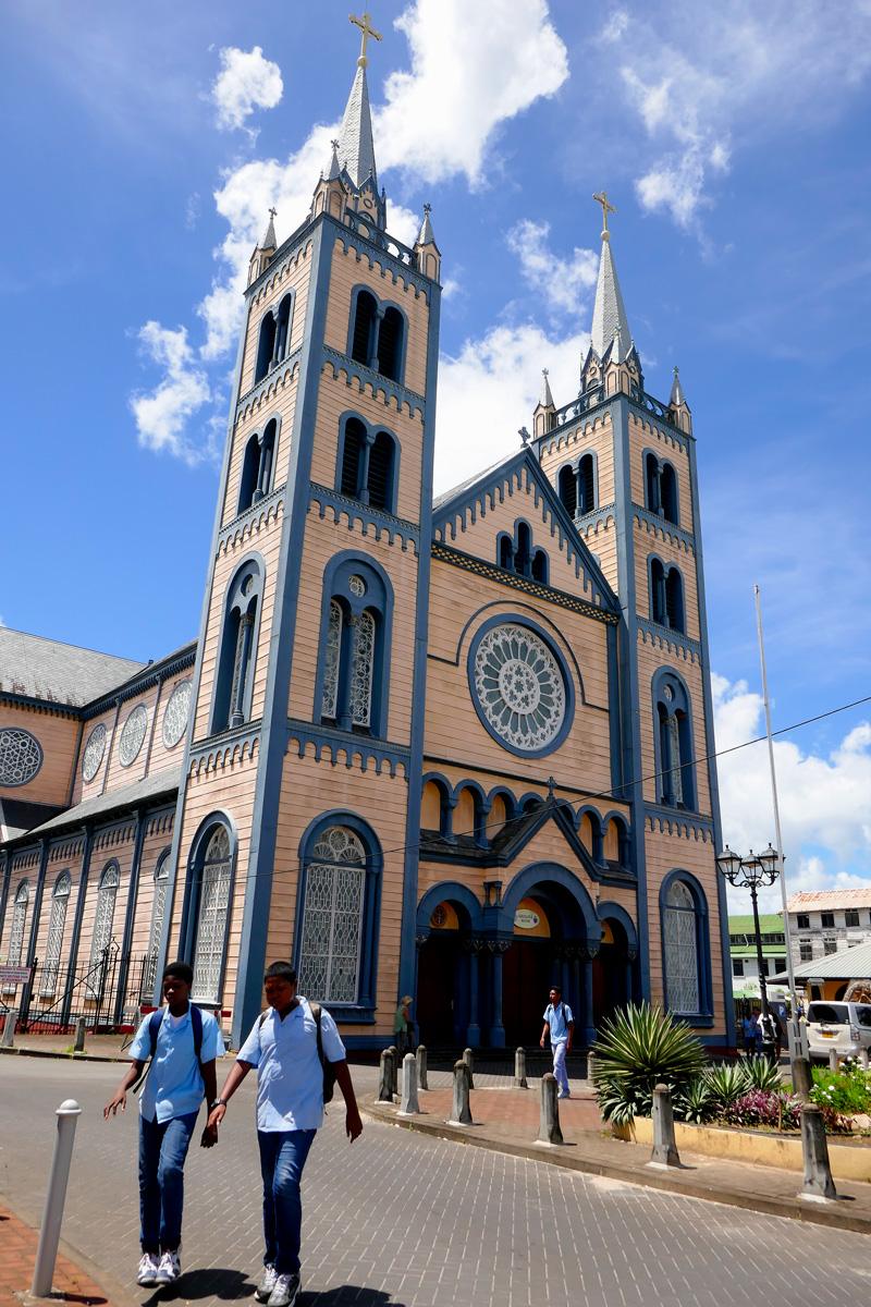 Nous avons tourné autour de la Cathédrale Paulus and Pietrus, la plus grande d’Amérique du Sud construite en bois, puis y sommes entrés un dimanche.