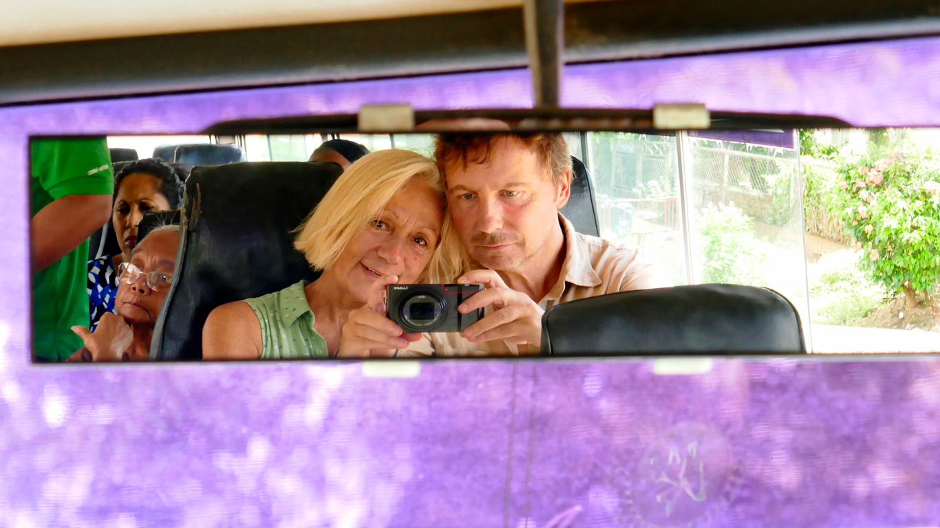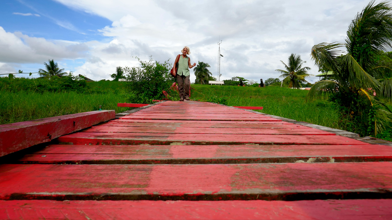 Finalement, nous restons une semaine de plus à Paramaribo ! Et, entre deux pages du blog mises en ligne, c’est à l’avant du bus de la ligne 4, avec un "morning" en chœur des passagers répondant au mien, que nous allons prendre un bateau pour une courte traversée du fleuve Surinam.