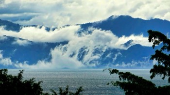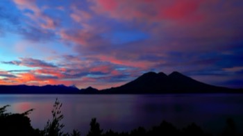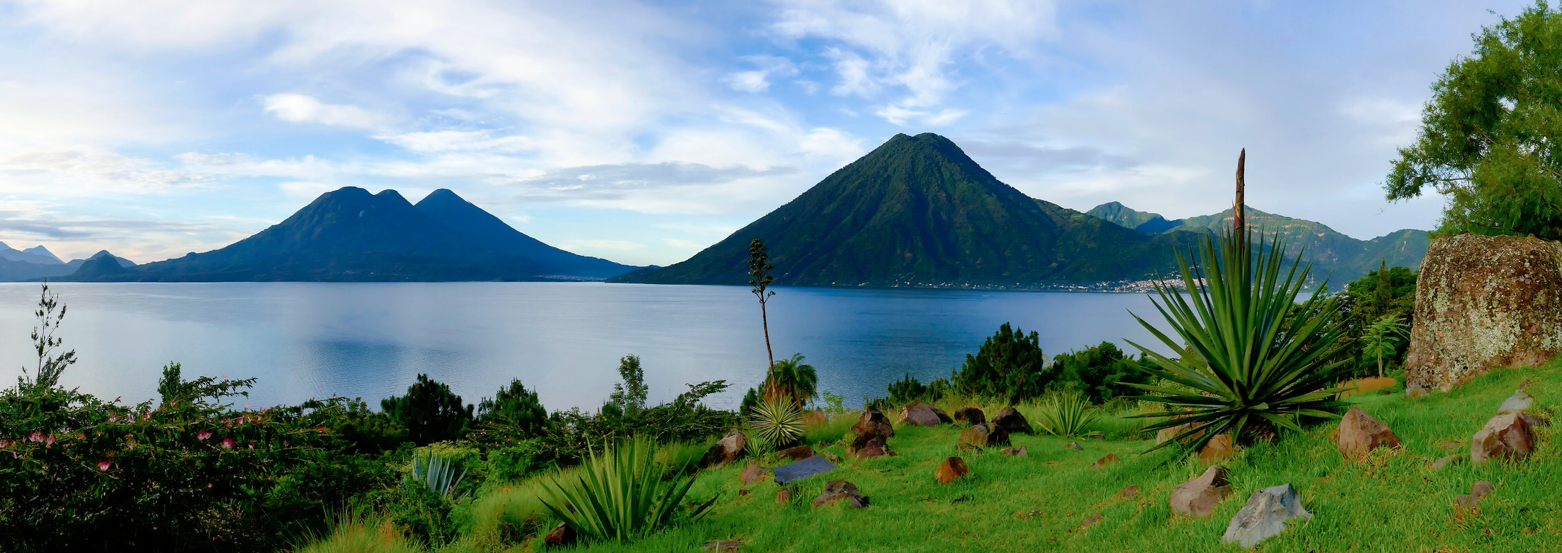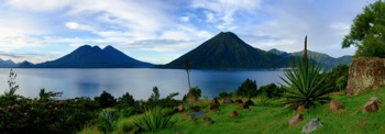 Lago Atitlán - Volcans Tolimán, Atitlán et au fond le Volcan de Fuego