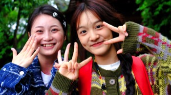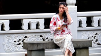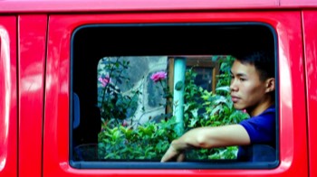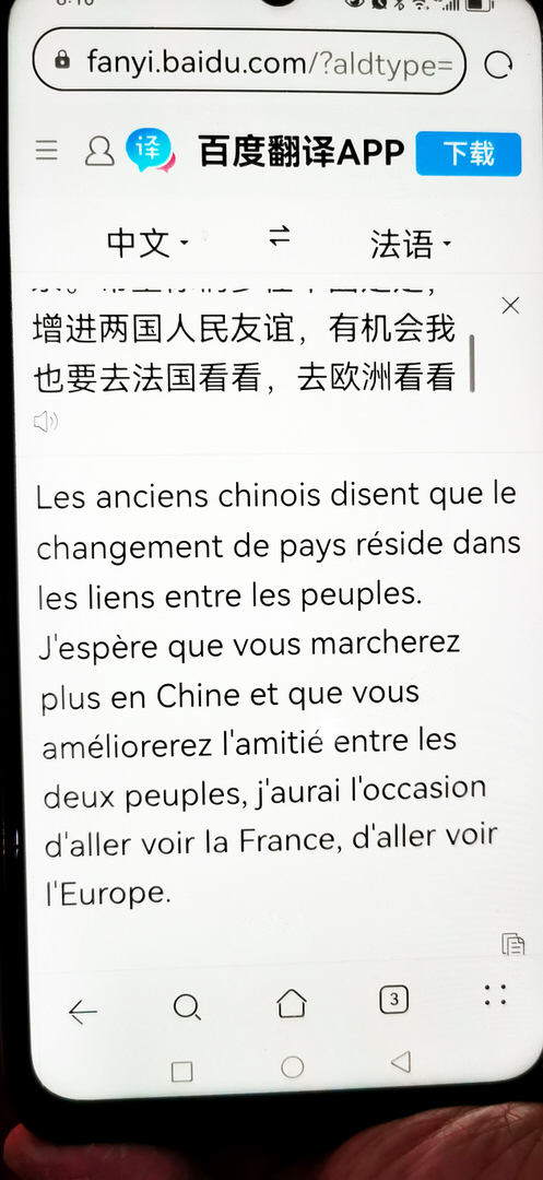 Rencontre avec un jeune Chinois, il nous traduit ses propos sur son téléphone…