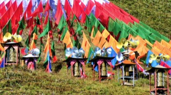 Moulins à prières tournant par la force du vent - Village de Tagong