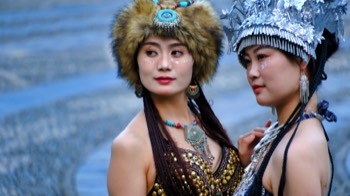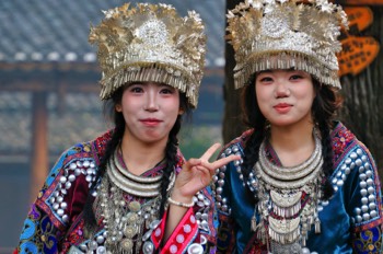 Touristes en costumes traditionnels Miao - Xijiang - Province du Guizhou