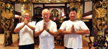 Moine Shusen, au centre, moine Shuhei, son fils à sa droite - Temple bouddhiste Hosenji construit en 1504 - Yokohama