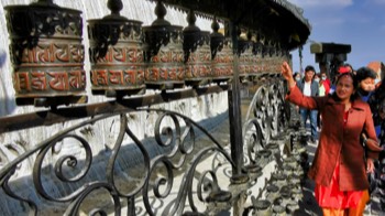 Kathmandu - Moulins à prières au temple Swyambhu Nath